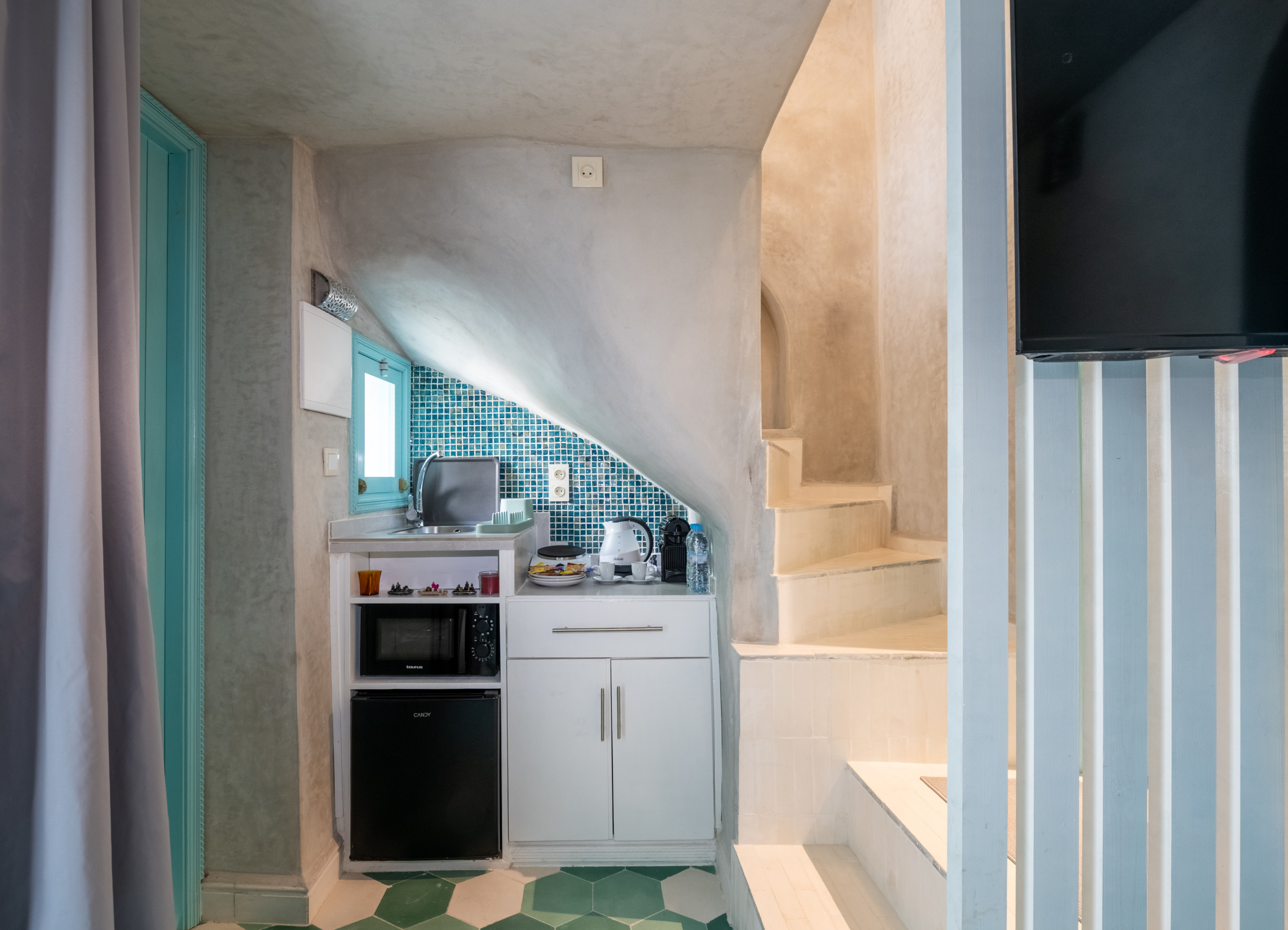 Immerse yourself in the charm of Tangier’s old medina in this beautiful loft with traditional Moroccan design. Decorated in soothing turquoise and white tones, the space combines authenticity and comfort, creating a warm and relaxing atmosphere just steps away from Bab Kasbah.