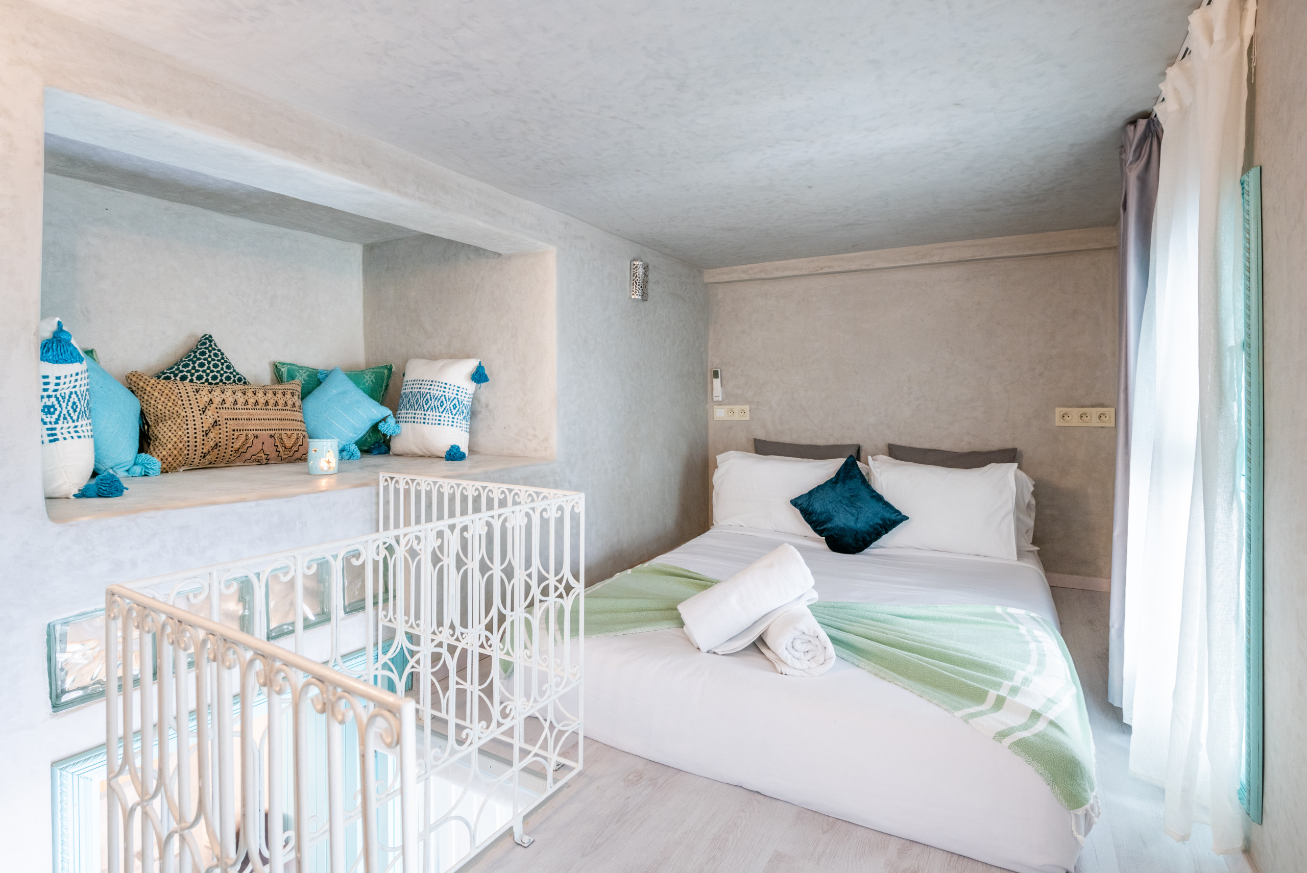 Sumérgete en el encanto de la antigua medina de Tánger en este hermoso loft con diseño marroquí tradicional. Decorado en suaves tonos turquesa y blanco, combina autenticidad y confort para crear un ambiente cálido y relajante a solo unos pasos de Bab Kasbah.