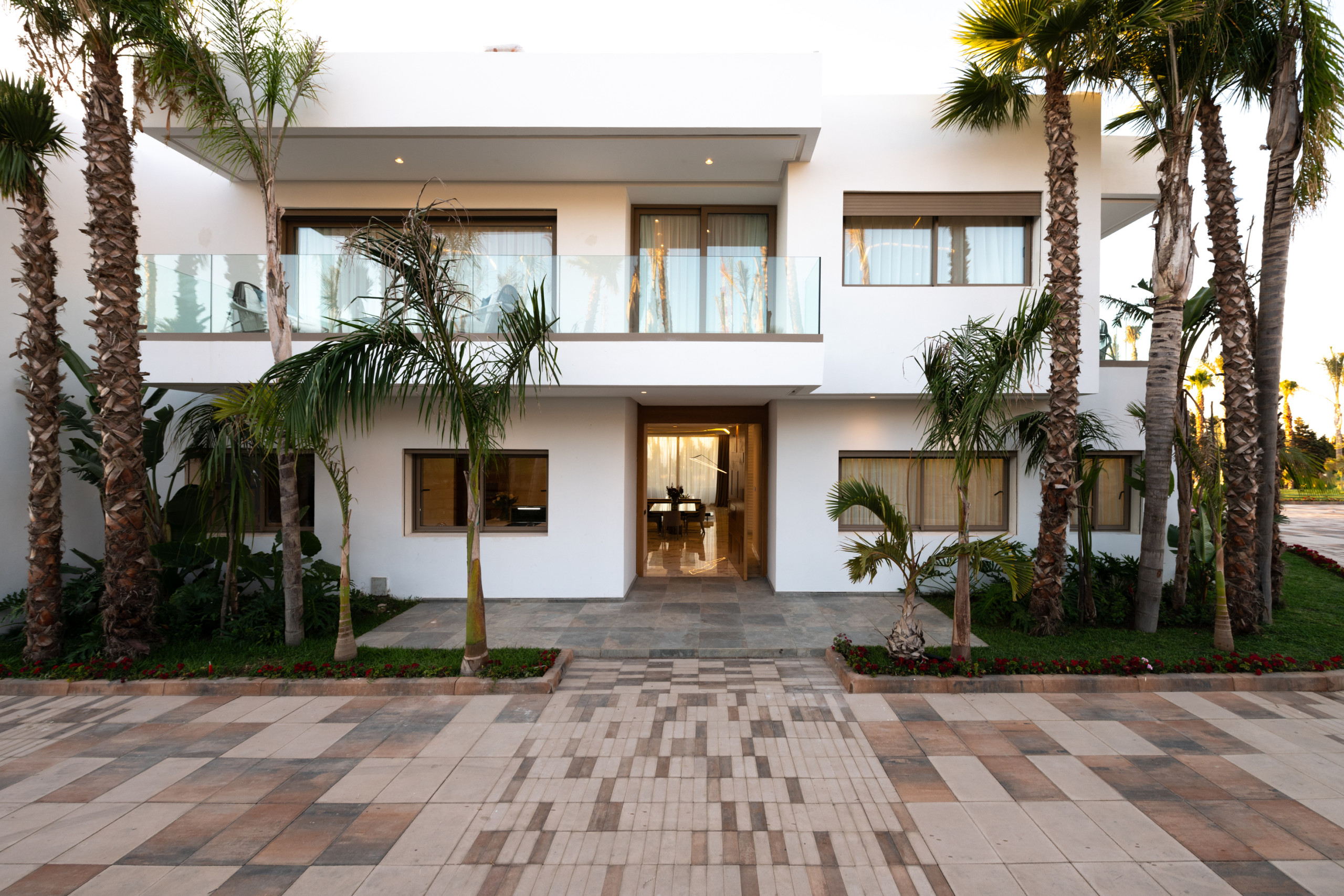 Cada villa también incluye dos cocinas completamente equipadas, un baño de invitados adicional y tres amplios salones impregnados de un encanto marroquí, fusionando elegancia cultural con diseño moderno.
